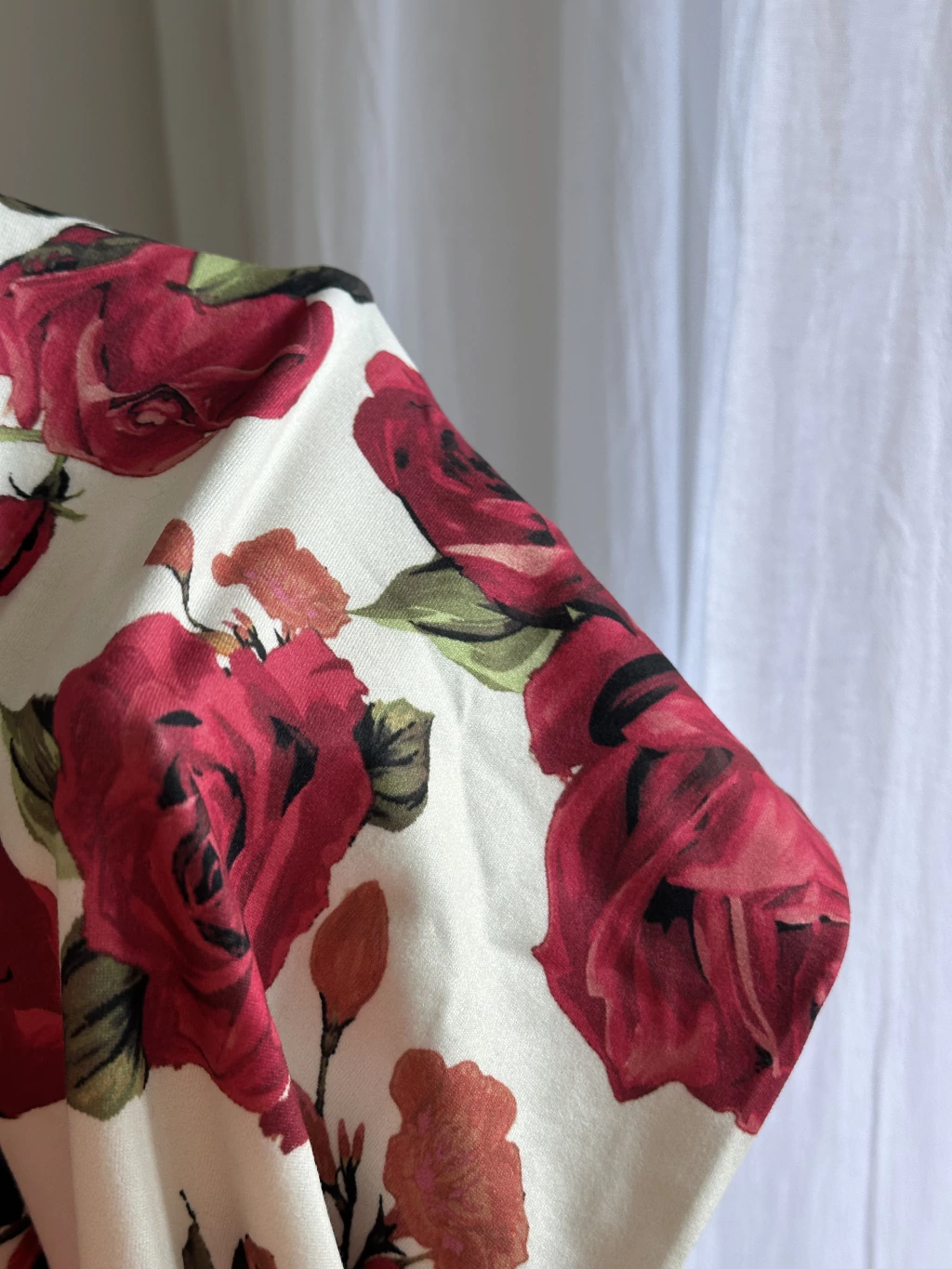 Un vestido que enamora desde el primer segundo. Vestido con estampa de rosas rojas, de corte largo y escote profundo que estiliza la figura. Cuenta con tiritas finas regulables, de tela elastizada lo que hace que ceda y se adapte perfectamente al cuerpo.